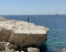 De heldere, turquoise wateren van de Middellandse Zee vormen een prachtig contrast met de ruige rotsen en bieden een veilige en uitnodigende plek om in te landen. Het water is diep genoeg om veilig te duiken, maar het is altijd belangrijk om eerst te controleren op mogelijke obstakels en de diepte voordat je springt.