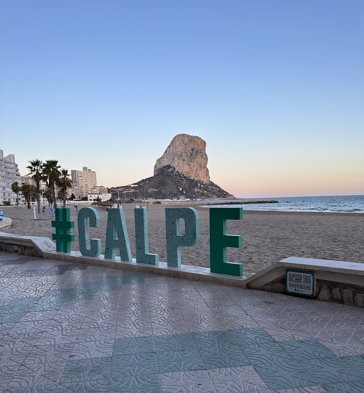 Populair zandstrand aan de Baai van Calpe met palmen en een promenade met restaurants. Locatie: Calp, Alicante, Spanje Parkeren: Dichtbij betaald Parking Sol Y mar [...]